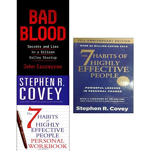 Bad blood [hardcover] and 7 habits of highly effective people personal workbook 3 books collection set. Description:- Bad Blood: Secrets and Lies in a Silicon Valley Startup The full inside story of the breathtaking rise and shocking collapse of Theranos, the multibillion-dollar biotech startup, by the prize-winning journalist who first broke the story and pursued it to the end, despite pressure from its charismatic CEO and threats by her lawyers.In 2014, Theranos founder and CEO Elizabeth Holmes was widely seen as the female Steve Jobs: a brilliant Stanford dropout whose startup “unicorn” promised to revolutionize the medical industry with a machine that would make blood testing significantly faster and easier. The 7 Habits of Highly Effective People The 7 Habits of Highly Effective People Personal Workbook Stephen Covey’s THE 7 HABITS OF HIGHLY EFFECTIVE PEOPLE took the self-help market by storm in 1990 and has enjoyed phenomenal sales ever since. With over 15 million copies in print, the book has become a classic. Now a touchstone for millions of individuals, as well as for families and businesses, the integrated, principle-centered 7 Habits philosophy has helped readers find solutions to their personal and professional problems, and achieve a life characterized by fairness, integrity, honesty, and dignity. Covey’s tried and true step-by-step approach can now be even more thoroughly explored in this new workbook.